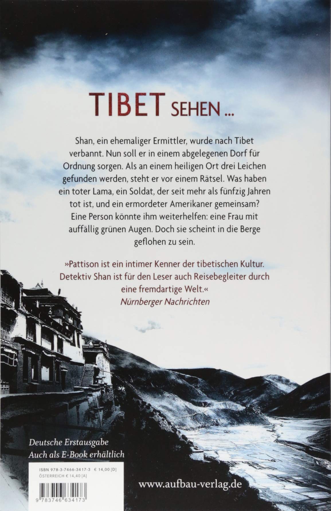 Tibet sehen ... Shan, der ehemalige Ermittler aus Peking, ist zum Polizisten ernannt worden. Als eine alte Nonne niedergeschlagen wird, versucht er, den Täter ausfindig zu machen - und gerät gleich in Schwierigkeiten. In einer Gruft, die von der Nonne bewacht wurde, werden drei Leichen gefunden: ein alter Lama, der als Heiliger verehrt wird, ein Soldat, der seit ungefähr fünfzig Jahren tot ist - und ein etwa vierzigjähriger, westlich gekleideter Mann, der allenfalls vor ein paar Stunden ermordet wurde. Shan findet heraus, dass der Tote ein Amerikaner ist, dessen Mutter vor vielen Jahren aus Tibet in die USA geflohen ist. Zeugen meinen, eine Frau an dem Grabmal gesehen zu haben: eine Frau mit auffällig grünen Augen.