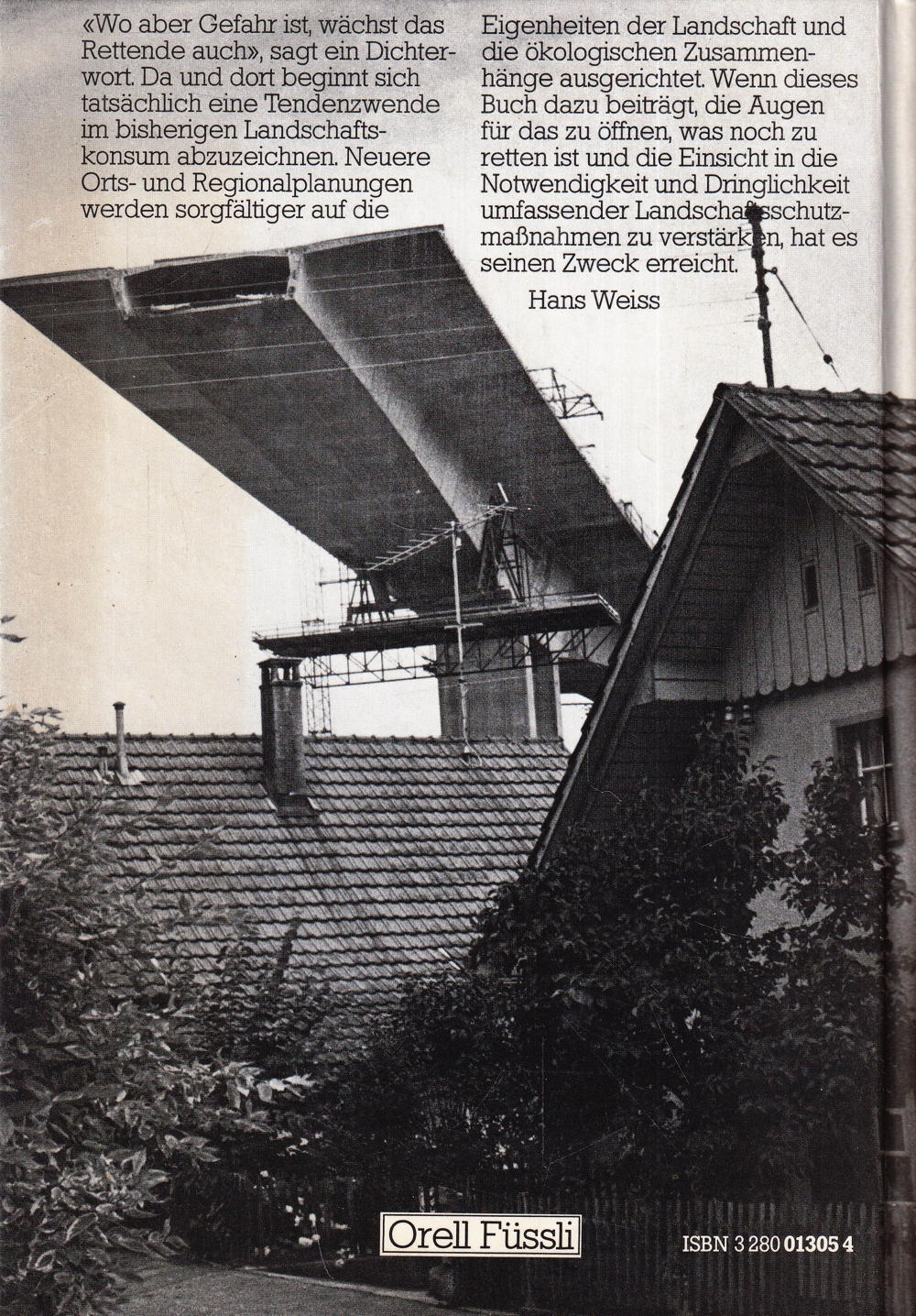 Und Ansätze zur Rettung in der Schweiz «Wo aber Gefahr ist, wächst das Rettende auch», sagt ein Dichterwort. Da und dort beginnt sich tatsächlich eine Tendenzwende im bisherigen Landschaftskonsum abzuzeichnen. Neuere Orts- und Regionalplanungen werden sorgfältiger auf die Eigenheiten der Landschaft und die ökologischen Zusammenhänge ausgerichtet. Wenn dieses Buch dazu beiträgt, die Augen für das zu öffnen, was noch zu retten ist und die Einsicht in die Notwendigkeit und Dringlichkeit umfassender Landschafsschutzmassnahmen zu verstärken, hat es seinen Zweck erreicht.