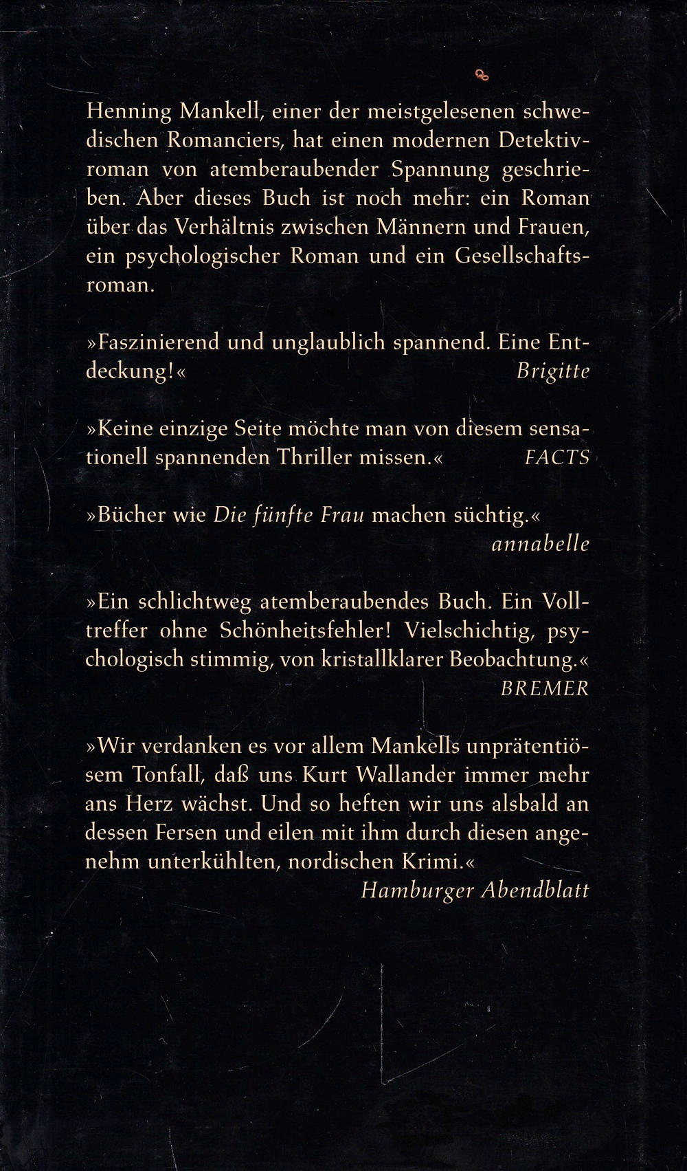 Henning Mankell, der meistgelesene schwedische Romancier und grossartiger Menschenkenner, hat einen modernen Detektivroman von atemberaubender Spannung geschrieben. Aber dieses Buch ist noch mehr: ein Roman über das Verhältnis zwischen Männern und Frauen, ein psychologischer Roman und ein grosser Gesellschaftsroman. Am Ende siegt die Gerechtigkeit. Aber der Grund, auf dem sie steht, ist längst unterhöhlt. »Die fünfte Frau« wurde zum Buch des Jahres 1998 gewählt.