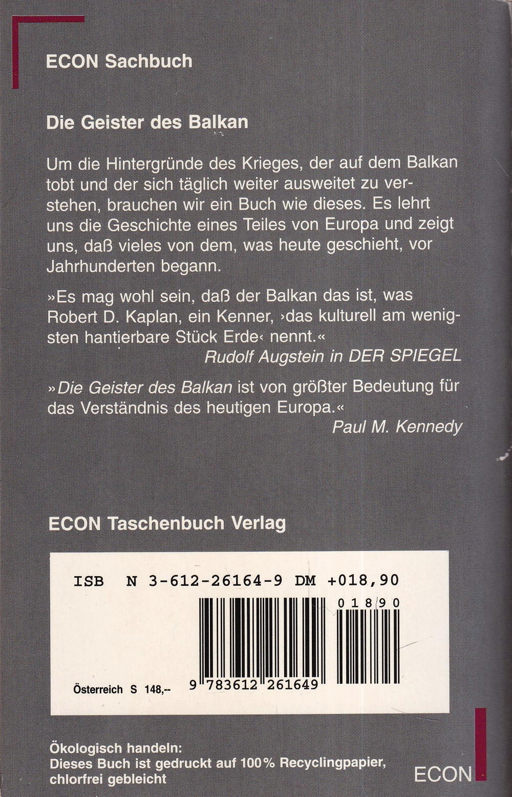 Mit Entsetzen hören wir Tag für Tag von kriegerischen Auseinandersetzungen im ehemaligen Jugoslawien. Schon von jeher war der Balkan ein Krisengebiet; dort nahm mit der Ermordung des Erzherzogs Franz Ferdinand die Tragödie des 20. Jahrhunderts ihren Anfang. Robert Kaplan gibt einen fundierten Überblick über Geschichte und Kultur der Balkanländer und macht uns mit der Gedankenwelt der Menschen vertraut, die hin- und hergerissen sind zwischen Hass und dem Wunsch nach Frieden.