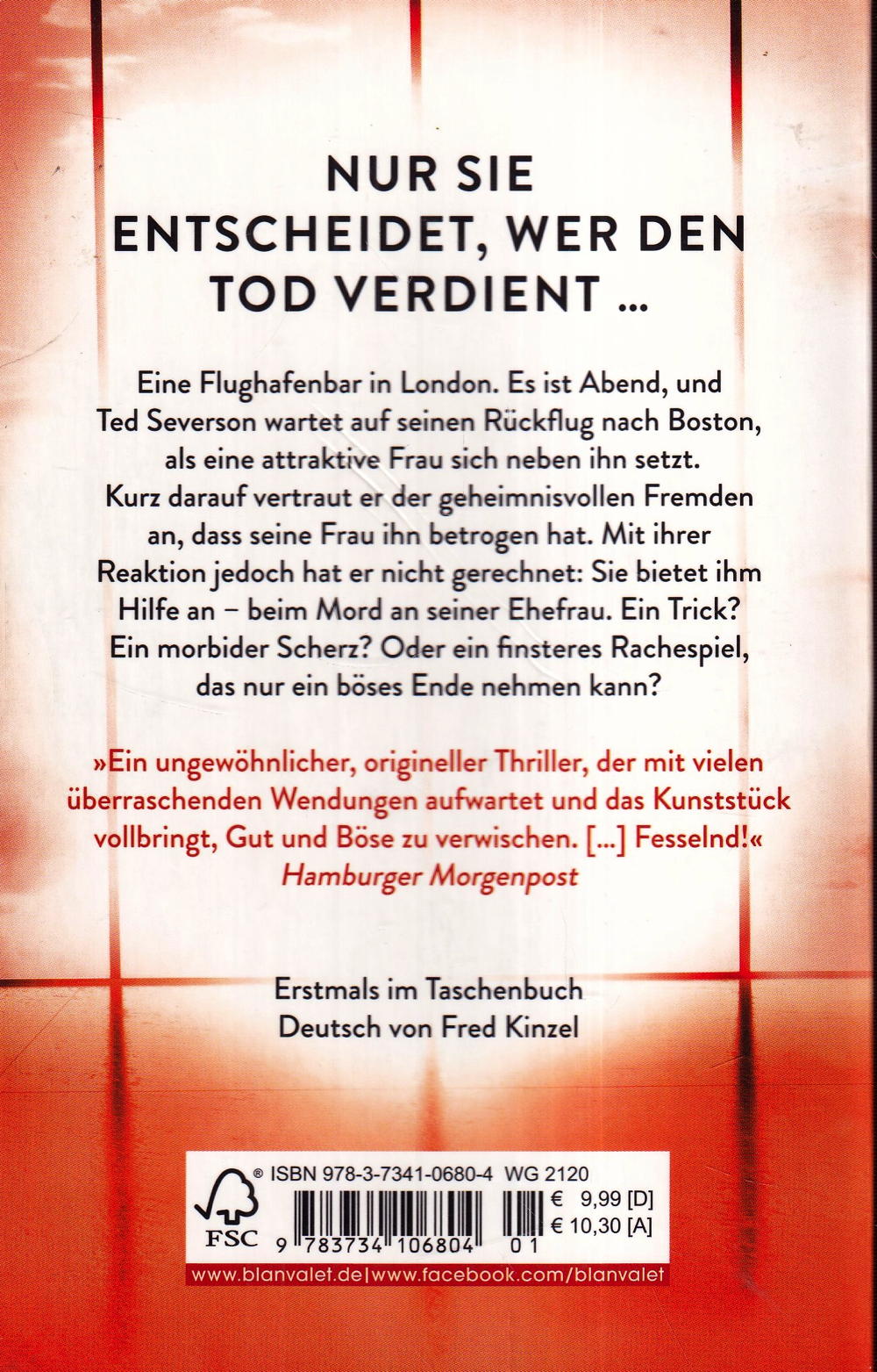 Eine Flughafenbar in London. Es ist Abend, und Ted Severson wartet auf seinen Rückflug nach Boston, als eine attraktive Frau sich neben ihn setzt. Kurz darauf vertraut er der geheimnisvollen Fremden an, dass seine Frau ihn betrogen hat. Mit ihrer Reaktion jedoch hat er nicht gerechnet: Sie bietet ihm Hilfe an - beim Mord an seiner Ehefrau. Ein Trick? Ein morbider Scherz? Oder ein finsteres Rachespiel, das nur ein böses Ende nehmen kann?