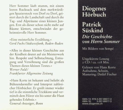 Herr Sommer läuft stumm, im Tempo eines Gehetzten, mit seinem leeren Rucksack und dem langen, merkwürdigen Spazierstock von Dorf zu Dorf, geistert durch die Landschaft und durch die Tag- und Alpträume eines kleinen Jungen. Erst als der kleine Junge schon nicht mehr auf Bäume klettert, entschwindet der geheimnisvolle Herr Sommer.