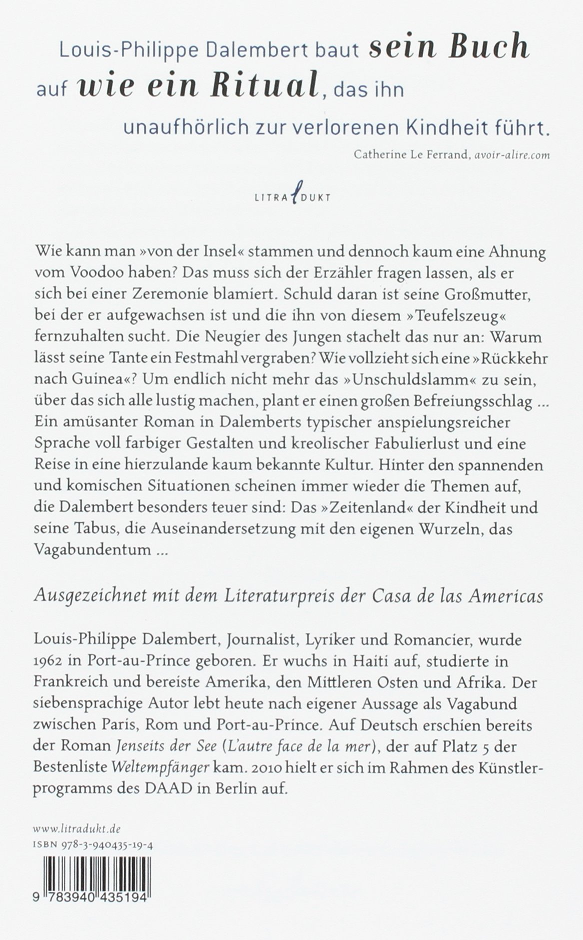 Wie kann man in Haiti aufwachsen und dennoch kaum eine Ahnung vom Voodoo haben? Das muss sich der Erzähler fragen lassen, als er sich bei einer Zeremonie blamiert. Schuld daran ist seine streng protestantische Grossmutter, bei der er aufgewachsen ist und die ihn von solchem "Teufelszeug" fernzuhalten suchte. Die Neugier des Kindes stachelt das nur an: Warum vergräbt seine Tante ein Festmahl? Wie vollzieht sich eine "Rückkehr nach Guinea"? Was steckt hinter der Krankheit und plötzlichen Heilung seines Onkels? Die Fragen und Ängste des Kindes verschmelzen mit denen des Erwachsenen, der seine Kindheit Revue passieren lässt.