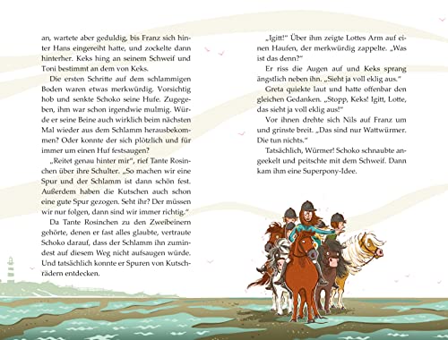 So hatten Schoko und Keks sich ihren Urlaub nicht vorgestellt! Als die Ponys auf Gut Dammbüll, ihrem alten Zuhause am Deich, ankommen, läuft nichts wie geplant: Auf dem Hof haben nun die eingebildeten Reitponys Hans und Franz das Sagen. Zwei richtige Meckerponys, wie Keks und Schoko finden. Und bei einem Ausflug übers Watt geht am Ende auch noch alles schief. Aber für zwei echte Super-Piraten-Ponys ist das natürlich kein Problem. Oder etwa doch?