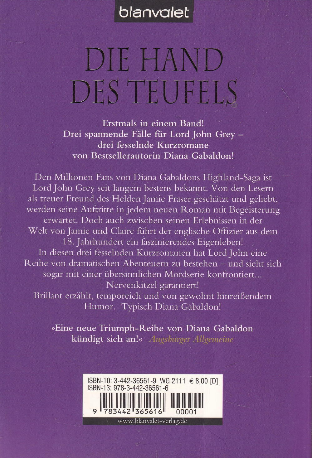 Den Millionen Fans von Diana Gabaldons Highland-Saga ist Lord John Grey seit langem bestens bekannt. Von den Lesern als treuer Freund des Helden Jamie Fraser geschätzt und geliebt, werden seine Auftritte in jedem neuen Roman mit Begeisterung erwartet. Doch auch zwischen seinen Erlebnissen in der Welt von Jamie und Claire führt der englische Offizier im London des 18. Jahrhunderts ein faszinierendes Eigenleben! – In diesen drei fesselnden Kurzromanen hat Lord John wieder einmal eine Reihe von dramatischen Abenteuern zu bestehen – und sieht sich schliesslich sogar mit einer übersinnlichen Mordserie konfrontiert...