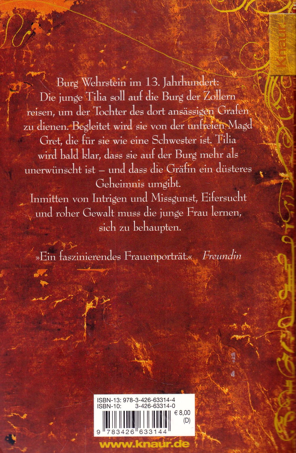 Burg Wehrstein im 13. Jahrhundert: Tilia bekommt von ihrem Vater einen prekären Auftrag. Sie soll auf die Burg der Zollern reisen, um der Tochter des dort ansässigen Grafen zu dienen. Begleitet wird sie von der unfreien Magd Gret, die für sie wie eine Schwester ist. Tilia wird bald klar, dass sie auf der Burg mehr als unerwünscht ist ? und dass die Gräfin ein düsteres Geheimnis umgibt. Inmitten von Intrigen und Missgunst, Eifersucht und roher Gewalt muss die junge Frau lernen, sich zu behaupten. »Ein faszinierendes Frauenporträt. « Freundin