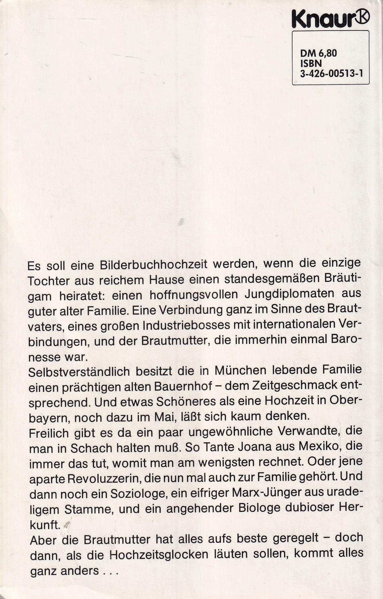 Es soll eine Bilderbuchhochzeit werden, wenn die einzige Tochter aus reichem Hause einen standesgemässen Bräutigam heiratet: einen hoffnungsvollen Jungdiplomaten aus guter alter Familie. Eine Verbindung ganz im Sinne des Brautvaters, eines grossen Industriebosses mit internationalen Verbindungen, und der Brautmutter, die immerhin einmal Baronesse war.