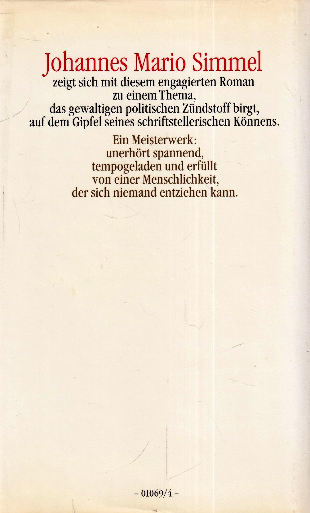 Johannes Mario Simmel zeigt sich mit diesem engagierten Roman zu einem Thema, das gewaltigen politischen Zündstoff birgt, auf dem Gipfel seines schriftstellerischen Könnens.