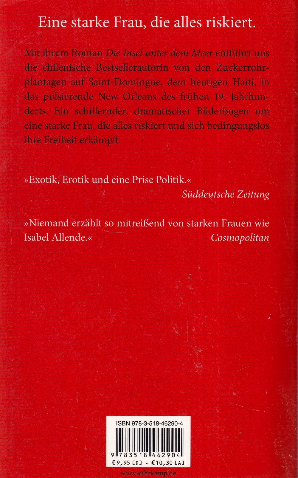 Mit ihrem neuen Roman Die Insel unter dem Meer entführt uns die chilenische Bestsellerautorin von den Zuckerrohrplantagen auf Saint-Domingue, dem heutigen Haiti, in das pulsierende New Orleans des frühen 19. Jahrhunderts. Ein schillernder, dramatischer Bilderbogen um eine starke Frau, die alles riskiert und sich bedingungslos ihre Freiheit erkämpft.