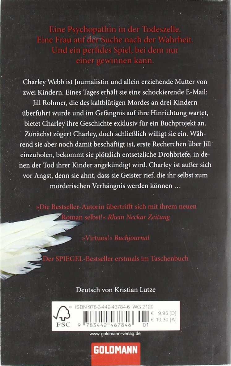 Charley Webb ist Journalistin und allein erziehende Mutter von zwei Kindern. Eines Tages erhält sie eine schockierende E-Mail: Jill Rohmer, die des kaltblütigen Mordes an drei Kindern überführt wurde und im Gefängnis auf ihre Hinrichtung wartet, bietet Charley ihre Geschichte exklusiv für ein Buchprojekt an. Zunächst zögert Charley, doch schließlich willigt sie ein. Während sie aber noch damit beschäftigt ist, erste Recherchen über Jill einzuholen, bekommt sie plötzlich entsetzliche Drohbriefe, in denen der Tod ihrer Kinder angekündigt wird. Charley ist außer sich vor Angst, denn sie ahnt, dass sie Geister rief, die ihr selbst zum mörderischen Verhängnis werden können ...
