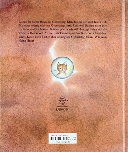 Lisbet, die kleine Hexe, hat Geburtstag. Klar, dass sie den auch feiern will. Mit einer richtig schönen Geburtstagstorte. Und weil Backen nicht ihre Sache ist und Zaubern schliesslich gelernt sein will, besorgt Lisbet sich die Torte in Hexendorf. Als sie zurückkommt, ist ihre Katze verschwunden. Ohne Katze kann Lisbet aber unmöglich Geburtstag feiern. Was nun, kleine Hexe?