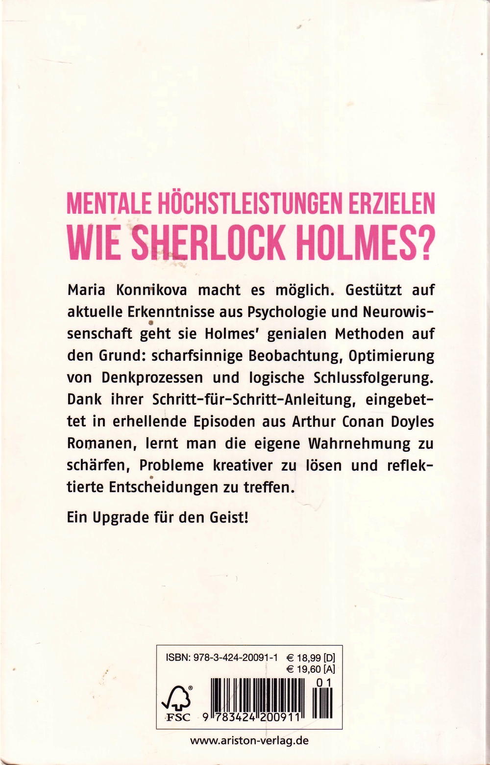 Wohl niemand ist berühmter für seine Beobachtungs- und Kombinationsgabe als Sherlock Holmes. Aber ist seine erstaunliche Intelligenz ein reines Fantasieprodukt? Maria Konnikova hat eine faszinierende Entdeckung gemacht: Holmes Scharfsinn liegen Techniken zugrunde, die wir nutzen können, um unser Berufs- und Privatleben zu verbessern. Indem sie Resultate aus Psychologie und Neurowissenschaft in erhellende Episoden aus Arthur Conan Doyles Romanen verpackt, vermittelt sie die wirkungsvollen mentalen Strategien auf unterhaltsame Art und Weise. Ein Upgrade für den Geist!