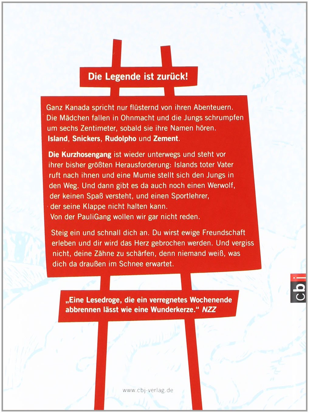 Die Kurzhosengang ist wieder unterwegs und steht vor ihrer bisher größten Herausforderung: Islands toter Vater ruft nach ihnen und eine Mumie stellt sich den Jungs in den Weg. Und dann gibt es da auch noch einen Werwolf, der keinen Spaß versteht, und einen Sportlehrer, der seine Klappe nicht halten kann. Von der PauliGang wollen wir gar nicht reden.