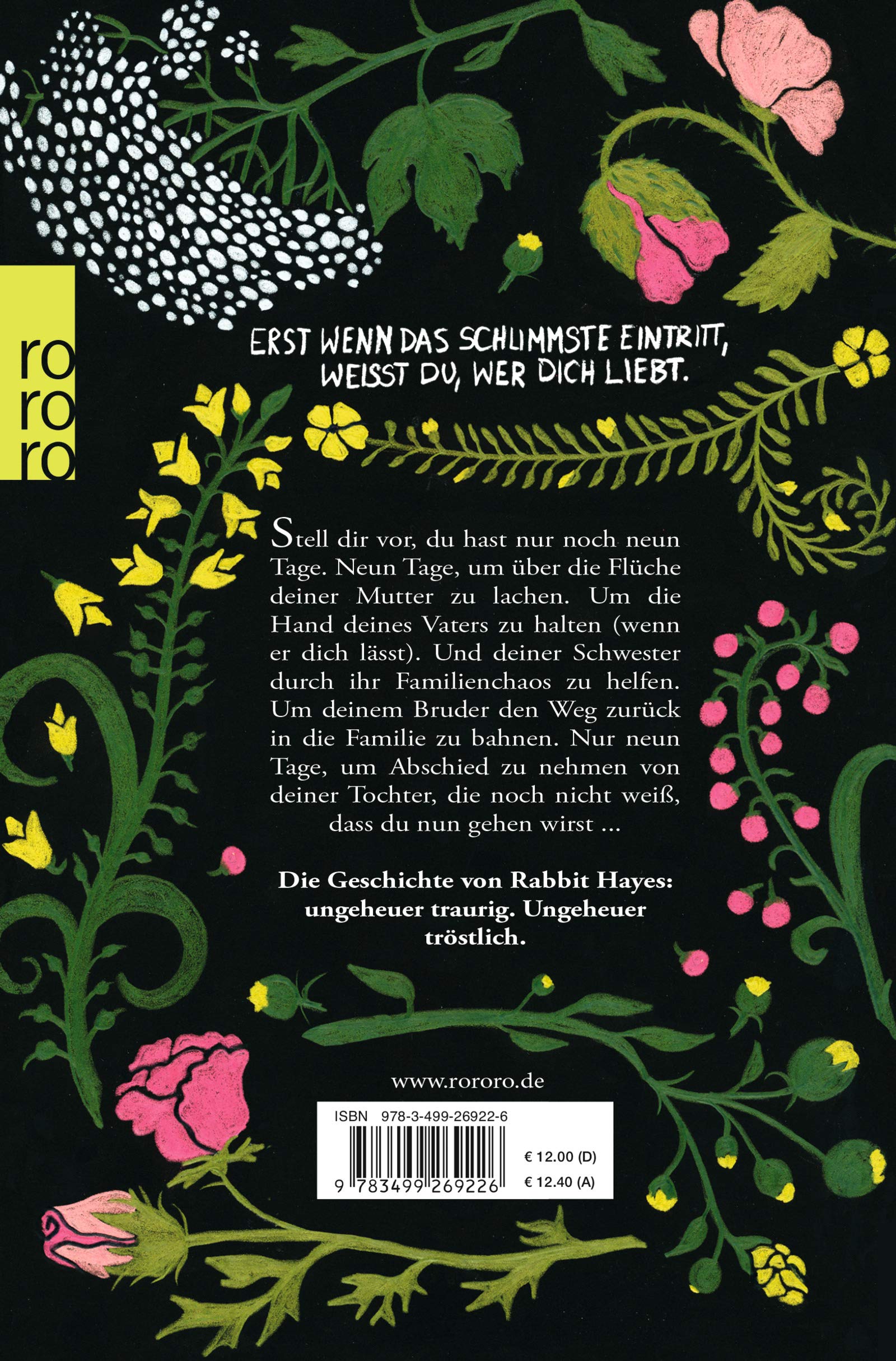Stell dir vor, du hast nur noch neun Tage. Neun Tage, um über die Flüche deiner Mutter zu lachen. Um die Hand deines Vaters zu halten (wenn er dich lässt). Und deiner Schwester durch ihr Familienchaos zu helfen. Um deinem Bruder den Weg zurück in die Familie zu bahnen. Nur neun Tage, um Abschied zu nehmen von deiner Tochter, die noch nicht weiß, dass du nun gehen wirst ...