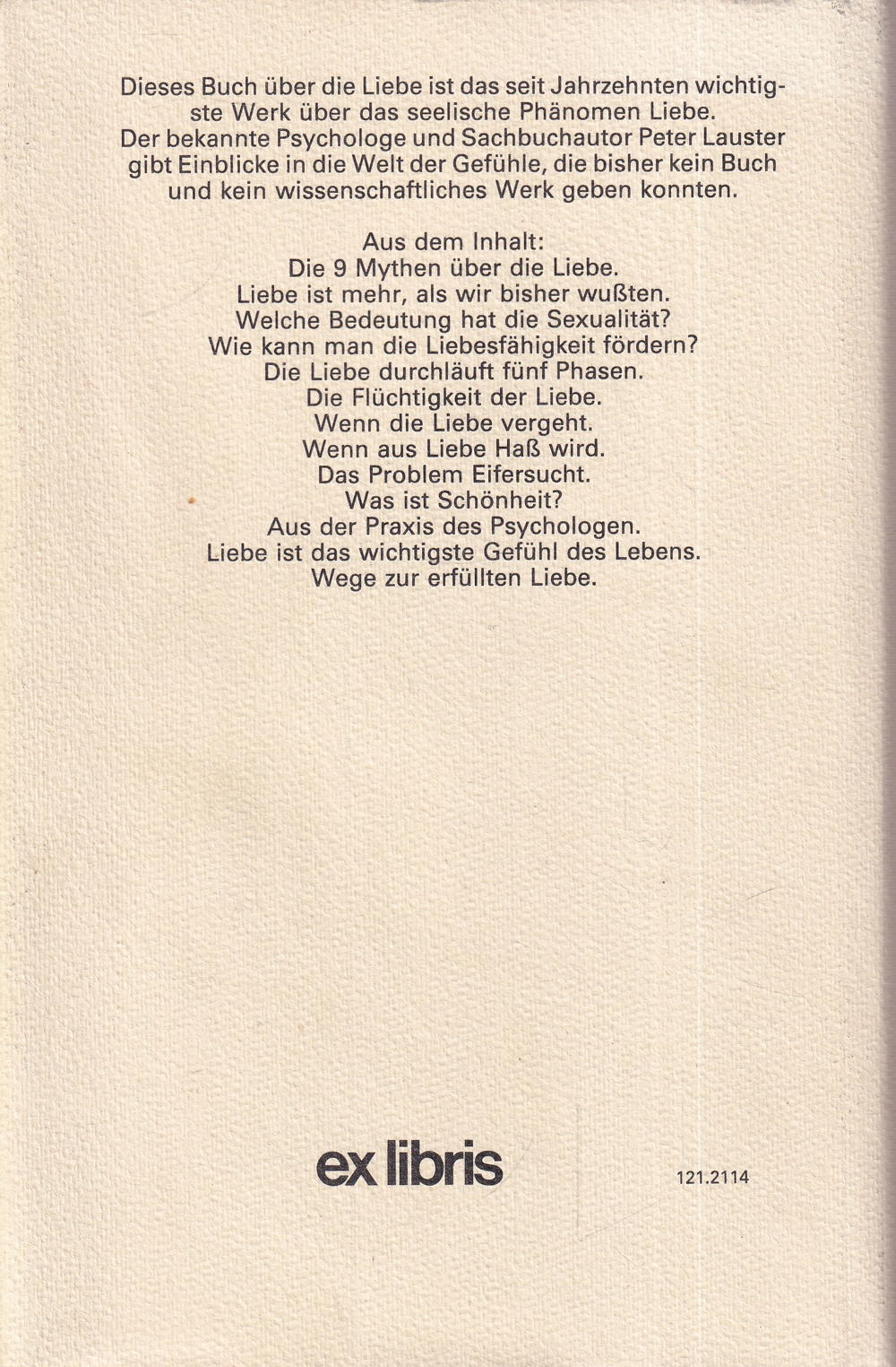 Der bekannte Psychologe und Sachbuchautor Peter Lauster gibt Einblicke in die Welt der Gefühle, die bisher kein Buch und kein wissenschaftliches Werk geben konnten.