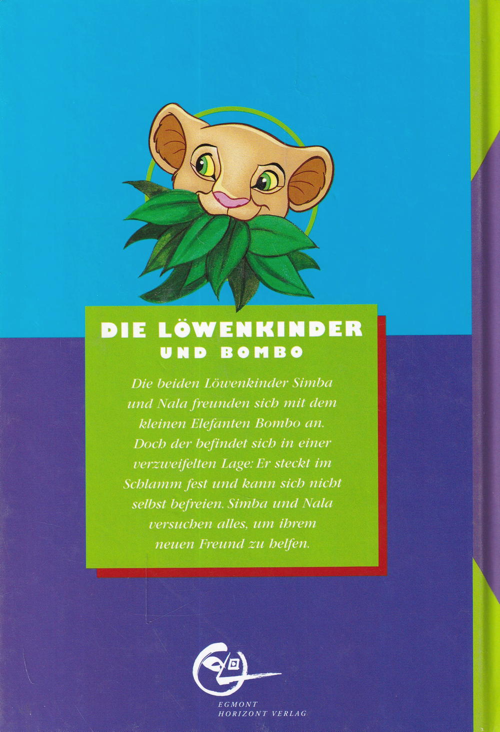 Die beiden Löwenkinder Simba und Nala freunden sich mit dem kleinen Elefanten Bombo an.