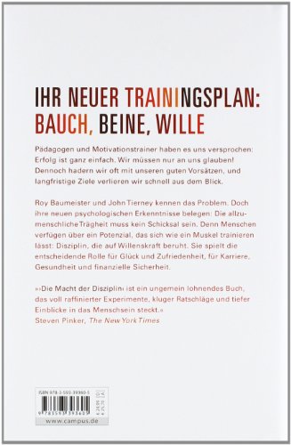 Millionen Motivationstrainer haben uns gesagt: Erfolg zu haben ist ganz einfach. Wir müssen nur an uns glauben. Aber warum sind dann immer noch so viele Menschen erfolglos und unzufrieden? Roy Baumeister und John Tierney kennen die Antwort. Auf der Grundlage neuer, bahnbrechender Forschungsergebnisse zeigen sie: Nicht positives Denken ist der Schlüssel zum Erfolg, sondern Disziplin. Die gute Nachricht: Disziplin beruht auf Willenskraft und lässt sich wie ein Muskel trainieren. Sie entscheidet über Glück und Zufriedenheit, über Karriere, Gesundheit und finanzielle Sicherheit. Erst daraus folgen Zuversicht und Selbstvertrauen. Sie brauchen also nur zwei Dinge, um erfolgreich zu sein: Disziplin und dieses Buch.