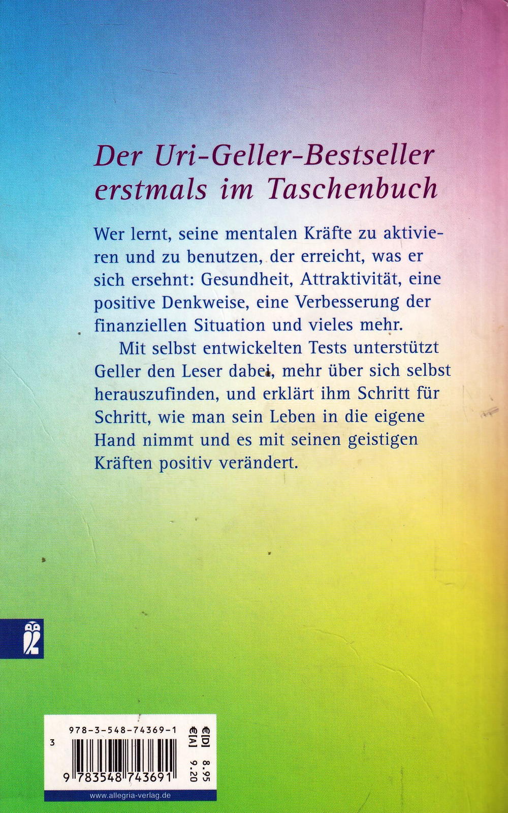 'Wer lernt, seine mentalen Kräfte zu aktivieren und zu benutzen, der erreicht, was er sich ersehnt: Gesundheit, Attraktivität, eine positive Denkweise, eine Verbesserung der finanziellen Situation und vieles mehr. Mit selbst entwickelten Tests unterstützt Uri Geller den Leser dabei, mehr über sich selbst herauszufinden, und erklärt ihm Schritt für Schritt, wie man sein Leben in die eigene Hand nimmt und es mit seinen geistigen Kräften positiv verändert.