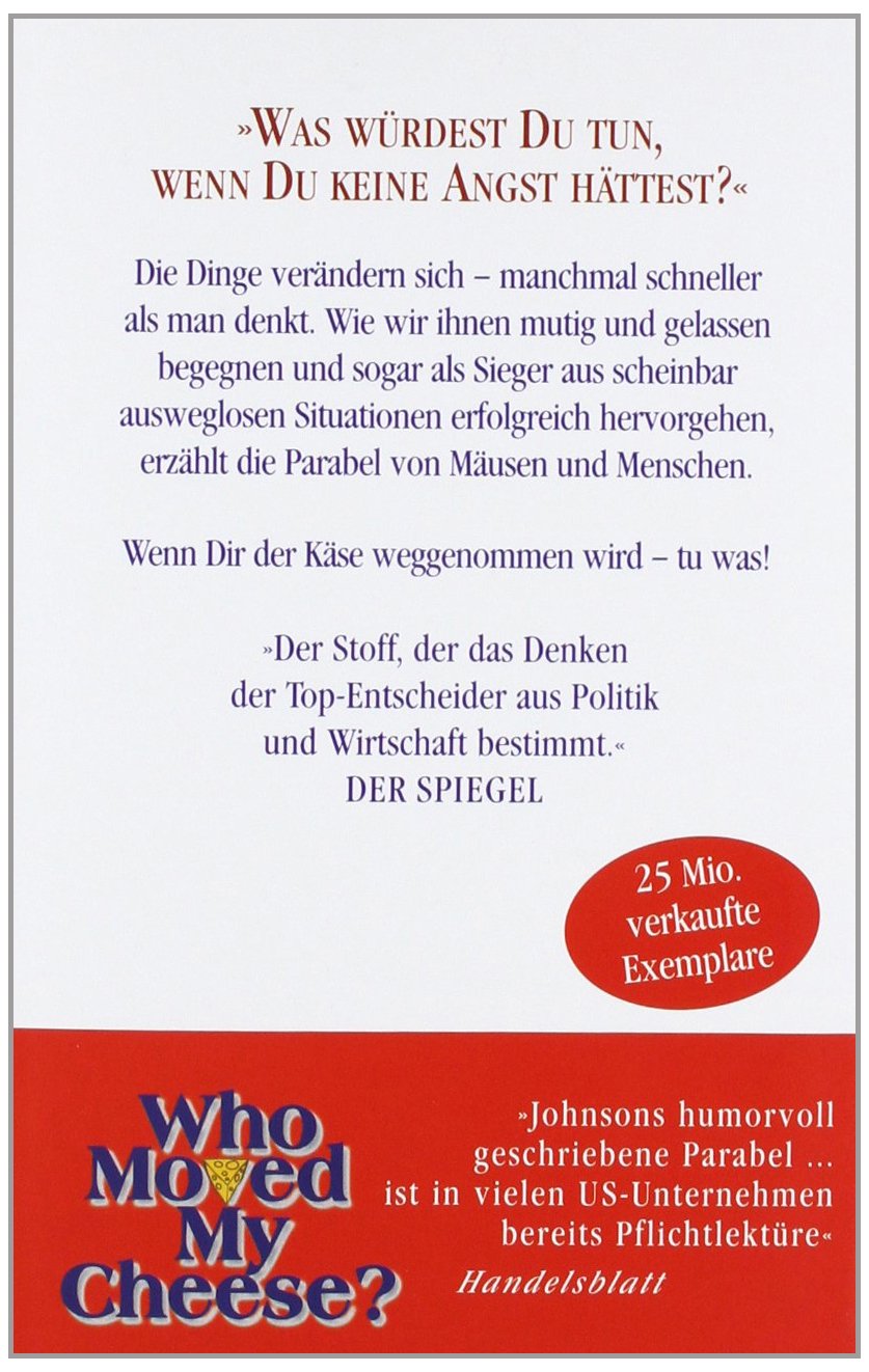 Spencer Johnsons erfolgreiche Mäuse-Fabel hat sich weltweit über 25 Millionen mal verkauft und unzähligen Menschen gezeigt, wie man erfolgreich mit Veränderungen umgehen und ihnen mit Mut und Gelassenheit begegnen kann. Nun gibt es den Bestseller als Sonderausgabe mit den besten Erfolgsstrategien der Mäuse. Das Erfolgspaket zum Mitnehmen oder Verschenken – jetzt in limitierter Auflage.