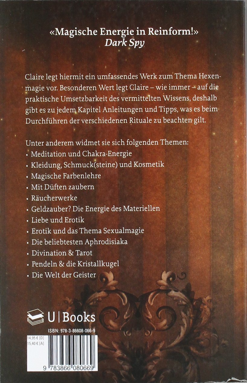 Nachdem Claire in den ersten beiden Büchern vor allem die Grundlagen der Hexenmagie behandelt hat, geht ihr neues Buch in die Tiefe und behandelt ausführlich die verschiedensten Bereiche der Magie. Besonderen Wert legt Claire - wie immer - auf die praktische Umsetzbarkeit des vermittelten Wissens, deshalb gibt es zu jedem Kapitel Anleitungen und Tipps, was es beim Durchführen der verschiedenen Rituale zu beachten gilt. Folgende Themen werden behandelt:
