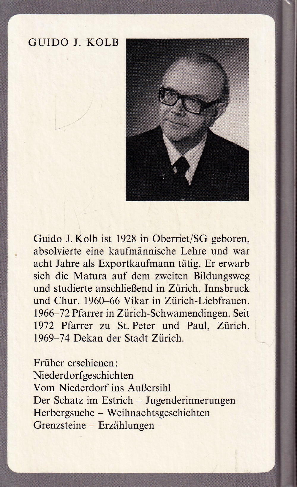 Guido J. Kolb ist 1928 in Oberriet/SG geboren, absolvierte eine kaufmännische Lehre und war acht Jahre als Exportkaufmann tätig. Er erwarb sich die Matura auf dem zweiten Bildungsweg und studierte anschliessend in Zürich, Innsbruck und Chur. 1960–66 Vikar in Zürich-Liebfrauen.