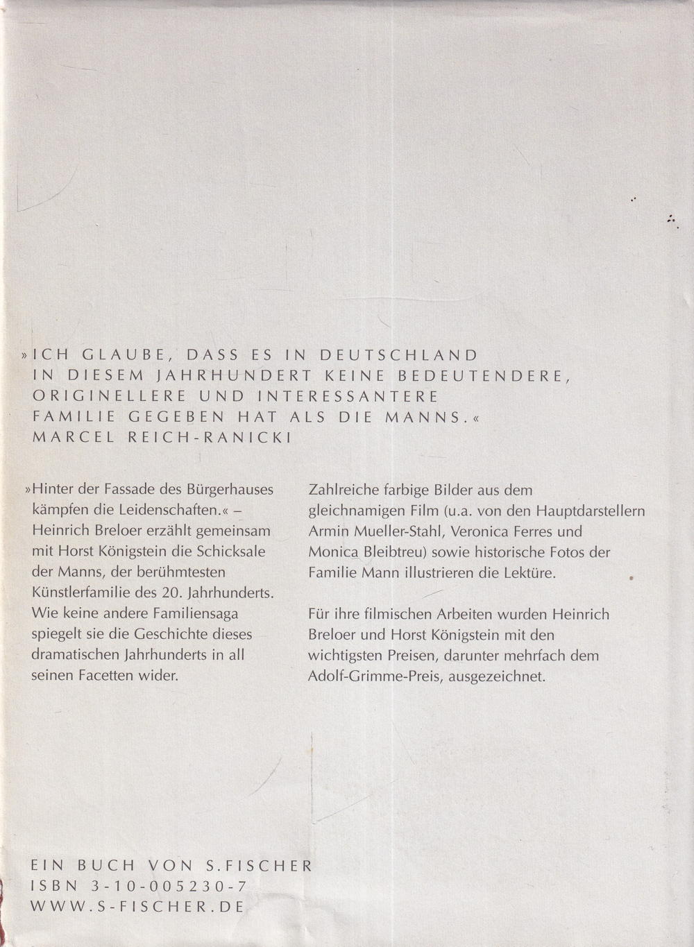 »Hinter der Fassade des Bürgerhauses kämpfen die Leidenschaften. « -Heinrich Breloer erzählt gemeinsam mit Horst Königstein die Schicksale der Manns, der berühmtesten Künstlerfamilie des 20. Jahrhunderts.