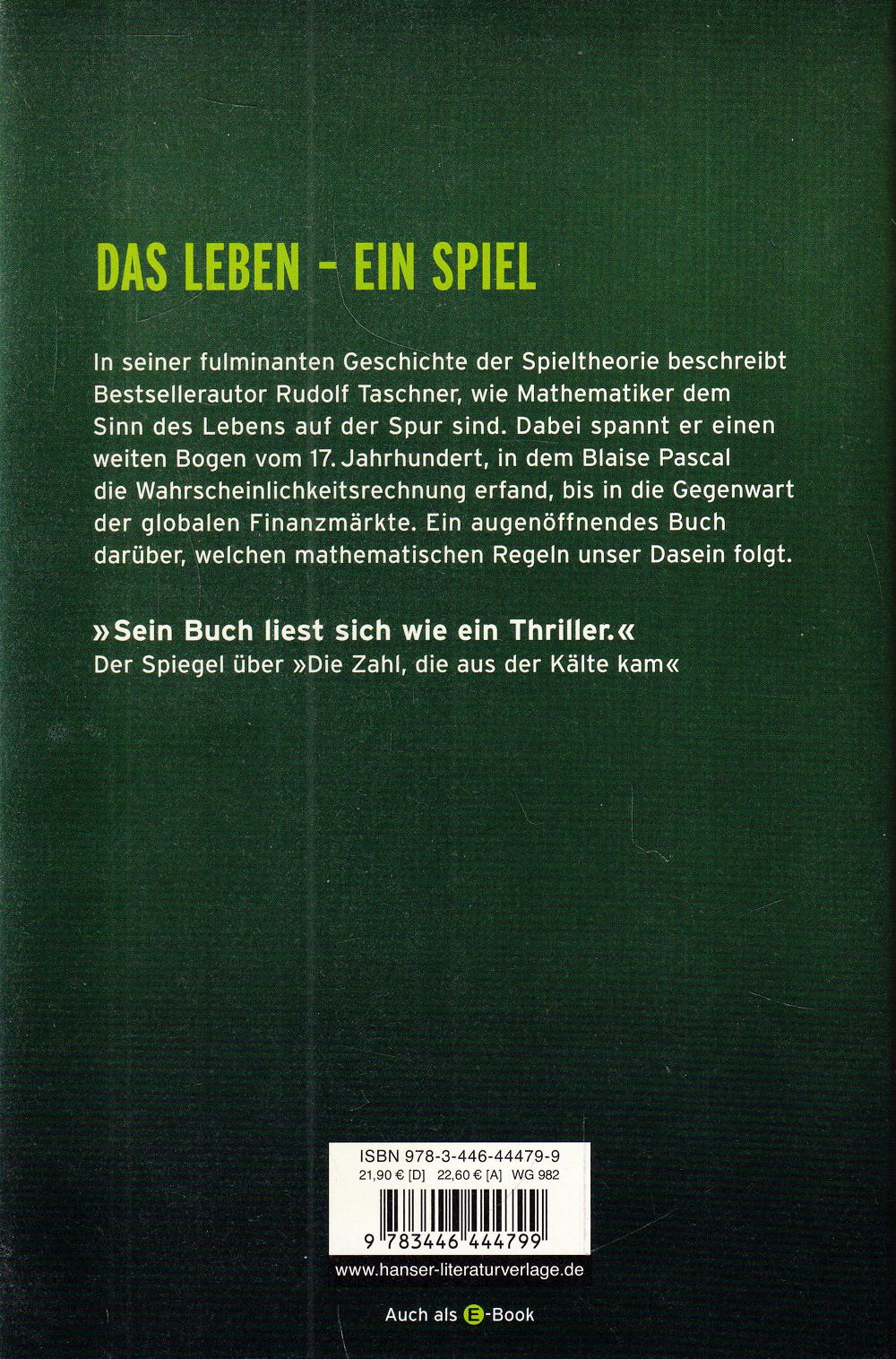 Das Leben ist ein Spiel, das mathematischen Regeln folgt; unsere Entscheidungen können berechnet, ihr grösstmöglicher Nutzen für alle kann kalkuliert werden. Diese Idee der Spieltheorie hat im 20. Jahrhundert Wirtschafts-, Politik- und Kulturgeschichte geschrieben. Spieltheoretiker waren Berater im Kalten Krieg. Und ohne dass sie es ahnten, legten sie das Fundament für den Siegeszug des Homo oeconomicus. In seiner fulminanten Geschichte der Spieltheorie spannt Bestsellerautor Rudolf Taschner einen Bogen von der Erfindung der Wahrscheinlichkeitsrechnung im 17. Jahrhundert bis in die Gegenwart der globalen Finanzmärkte. Ein Buch über die Mathematik als Sinnsuche - fesselnd wie ein Kriminalroman.