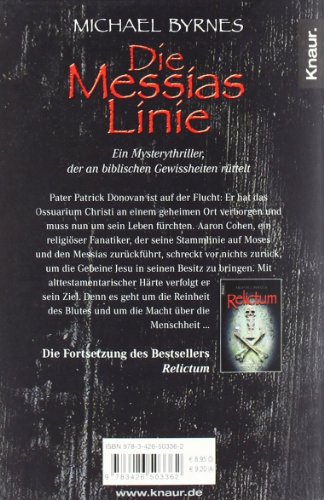 Pater Patrick Donovan ist auf der Flucht: Er hat das Ossuarium Christi an einem geheimen Ort verborgen und muss nun um sein Leben fürchten. Aaron Cohen, einreligiöser Fanatiker, der seine Stammlinie auf Moses und den Messias zurückführt, schreckt vor nichts zurück, um die Gebeine Jesu in seinen Besitz zu bringen. Mitalttestamentarischer Härte verfolgt er sein Ziel. Denn es geht um die Reinheitdes Blutes und um die Macht über die Menschheit...