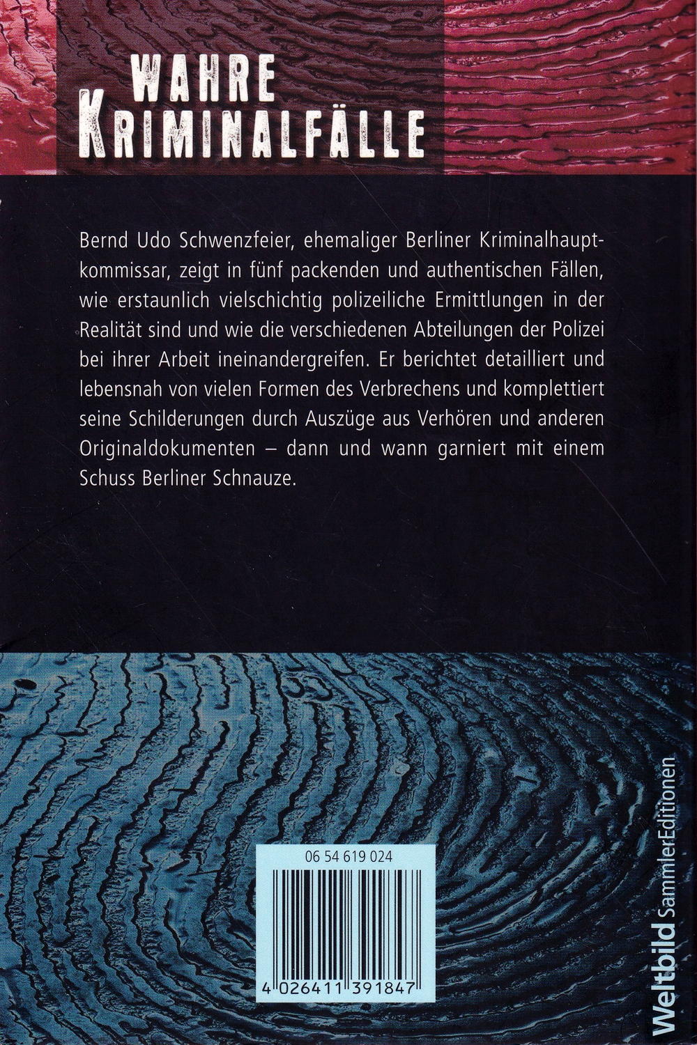 Bernd U. Schwenzfeier, erfahrener Kriminalist, zeigt in diesen und drei weiteren packenden authentischen Fällen, wie erstaunlich vielschichtig die polizeiliche Ermittlungsarbeit in der Realität ist und wie die verschiedenen Abteilungen der Polizei ineinandergreifen. Er berichtet versiert, detailliert und lebensnah von Verbrechen wie Einbruch, Mord und Schiessereien ... und einem Mord, der gar keiner war. Komplettiert werden seine Schilderungen durch Abschriften von Tonbändern der Verhöre und anderer Originaldokumente dann und wann garniert mit einem Schuss Berliner Schnauze.