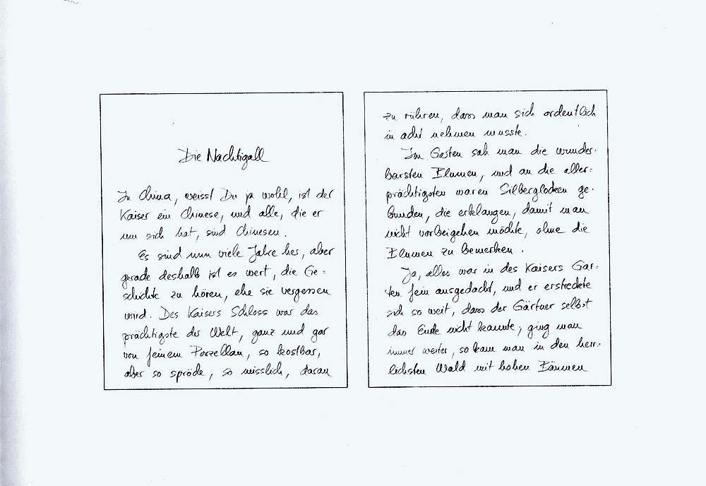 Der Kaiser von China hatte eine Nachtigall, die so herrlich sang, dass sie alle Menschen glücklich machte. Doch eines Tages erhielt er ein ganz besonderes Geschenk: einen mechanischen Singvogel, der noch viel schöner singen konnte. Da flog die echte Nachtigall davon...