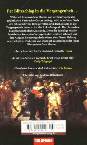 Eine geniale Mischung aus Witz, Ironie und philosophischem Tiefsinn. Durch einen Blitzschlag wird Kommandeur Mumm von der Stadtwache dreissig Jahre in die Vergangenheit versetzt: Im alten Ankh-Morpork herrschen bürgerkriegsähnliche Zustände. Die Wache besteht aus korrupten Versagern, und einer von ihnen ist der junge Obergefreite Sam Mumm, der den schädlichen Einflüssen eines gefährlichen Verbrechers zu erliegen droht...
