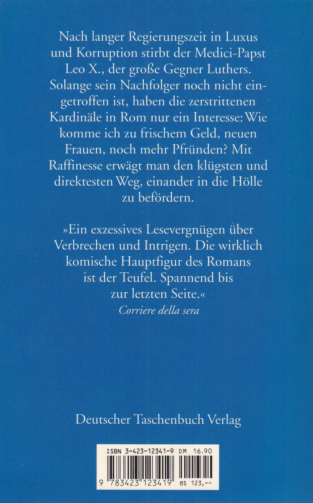 Nach langer Regierungszeit in Luxus und Korruption stirbt der Medici-Papst Leo X., der grosse Gegner Luthers. Solange sein Nachfolger noch nicht eingetroffen ist, haben die zerstrittenen Kardinäle in Rom nur ein Interesse: Wie komme ich zu frischem Geld, neuen Frauen, noch mehr Pfründen? Mit Raffinesse erwägt man den klügsten und direktesten Weg, einander in die Hölle zu befördern.
