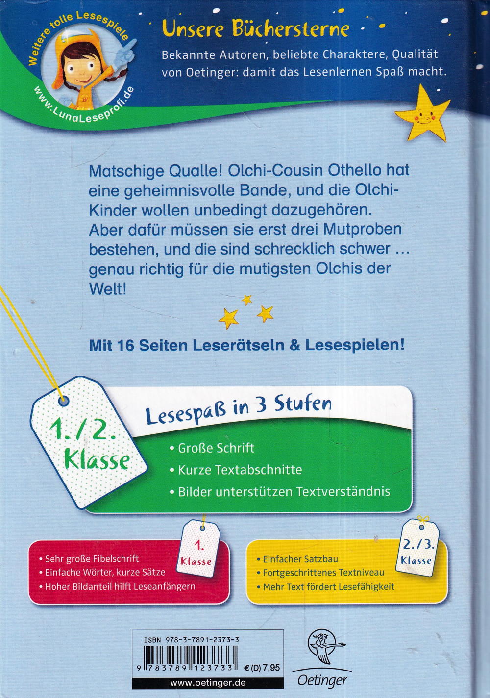 Schmuddelspass am Strand: die tapfersten Olchis der Welt. Die Olchi-Kinder besuchen ihre Verwandten an der Nordsee. Und hier erwartet sie Schreckliches, denn ihr Cousin will die beiden nur dann in die Bande der schwarzen Muschel aufnehmen, wenn sie drei Mutproben bestehen: von einem hohen Felsen springen, frische Pfirsiche essen und sich mit Parfümseife waschen. Doch die mutigsten Olchis der Welt schrecken vor nichts zurück! Lesen lernen mit Büchersterne für die 1. /2. Klasse: grosse Schrift, kurze Textabschnitte und viele Bilder, die das Textverständnis von Leseanfängern unterstützen. Dazu 16 Seiten Leserätsel und Lesespiele im Anhang.