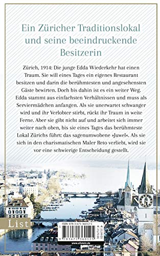 Ein Züricher Traditionslokal und seine beeindruckende Besitzerin Zürich, 1914: Die junge Edda Wiederkehr hat einen Traum. Sie will eines Tages ein eigenes Restaurant besitzen und darin die berühmtesten und angesehensten Gäste bewirten. Doch bis dahin ist es ein weiter Weg. Edda stammt aus einfachsten Verhältnissen und muss als Serviermädchen anfangen. Als sie unerwartet schwanger wird und ihr Verlobter stirbt, rückt ihr Traum in weite Ferne. Aber sie gibt nicht auf und arbeitet sich immer weiter nach oben, bis sie eines Tages das berühmteste Lokal Zürichs führt: das sagenumwobene »Juwel«. Als sie sich in den charismatischen Maler Reto verliebt, wird sie vor eine schwierige Entscheidung gestellt.