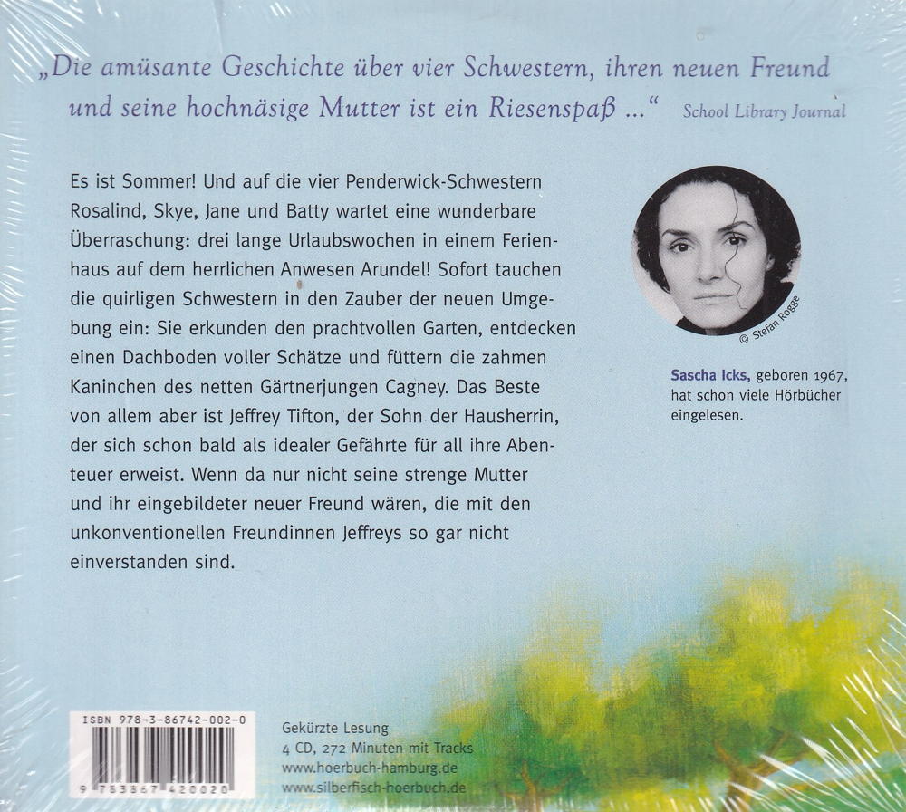 Es ist Sommer! Und auf die vier Penderwick-Schwestern Rosalind, Skye, Jane und Batty wartet eine wunderbare Überraschung: drei lange Urlaubswochen in einem Ferienhaus auf dem herrlichen Anwesen Arundel! Sofort tauchen die quirligen Schwestern in den Zauber der neuen Umgebung ein: Sie erkunden den prachtvollen Garten, entdecken einen Dachboden voller Schätze und füttern die zahmen Kaninchen des netten Gärtnerjungen Cagney. Das Beste von allem aber ist Jeffrey Tifton, der Sohn der Hausherrin, der sich schon bald als idealer Gefährte für all ihre Abenteuer erweist. Wenn da nur nicht seine strenge Mutter und ihr eingebildeter neuer Freund wären, die mit den unkonventionellen Freundinnen Jeffreys so gar nicht einverstanden sind.