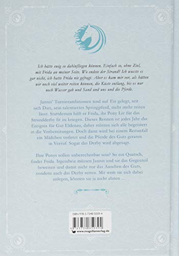 Jannis’ Turnierambitionen sind im Moment auf Eis gelegt, denn Dari, sein vielversprechendes Springpferd, lässt sich nach einem traumatischen Erlebnis nicht reiten. Stattdessen hilft er Frida, ihr Pony Liv für das alljährliche Strandderby fit zu kriegen. Das Derby hat Tradition: Seit Jahren ist es das Ereignis für Gut Eldenau, daher stürzen sich alle begeistert in die Vorbereitungen. Doch dann wird bei einem Reitunfall ein Mädchen verletzt und die Pferde des Guts geraten in Verruf. Sogar das Strandderby wird abgesagt. Ihre Ponys sollen unberechenbar sein? So ein Quatsch, findet Frida. Irgendwie müssen Jannis und sie das Gegenteil beweisen und damit nicht nur das Ansehen des Guts, sondern auch das Strandderby retten. Mit wem sie sich dabei anlegen, können sie ja nicht ahnen …