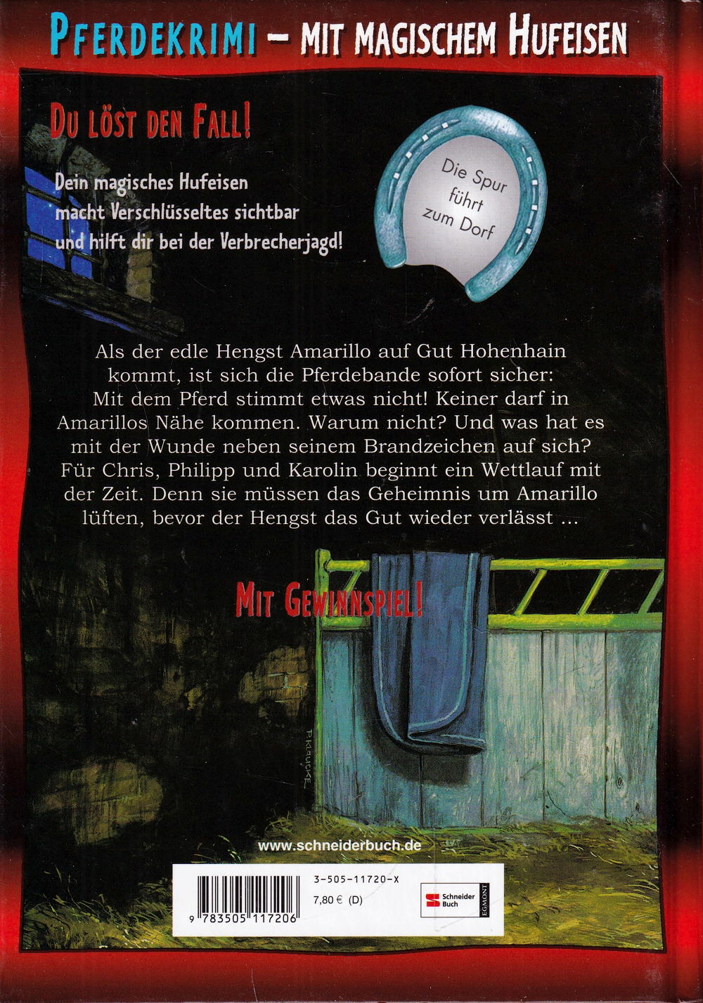 Als der Hengst Amarillo aufs Gut kommt, weiss jeder sofort: mit dem Pferd stimmt was nicht! Keiner darf in Amarillos Nähe. Warum nicht? Und was hat es mit der Wunde neben seinem Brandzeichen auf sich? In einem Wettlauf mit der Zeit finden Chris, Phillipp und Karolin heraus , dass Amarillo gestohlen ist ...