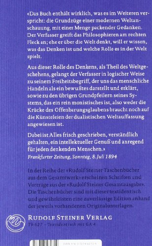 In seinem philosophischen Hauptwerk, das zugleich Fundament der anthroposophischen Geisteswissenschaft ist, setzt sich Rudolf Steiner mit Grundfragen des Erkenntnisprozesses und der Ethik auseinander.