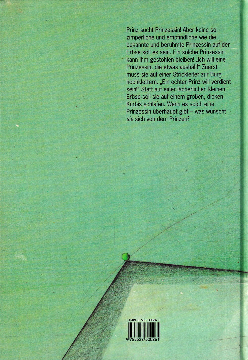 Prinz sucht Prinzessin! Aber keine so zimperliche und empfindliche wie die bekannte und berühmte Prinzessin auf der Erbse soll es sein. Ein solche Prinzessin kann ihm gestohlen bleiben! „Ich will eine Prinzessin, die etwas aushält!“Zuerst muss sie auf einer Strickleiter zur Burg hochklettern. „Ein echter Prinz will verdient sein!“Statt auf einer lächerlichen kleinen Erbse soll sie auf einem grossen, dicken Kürbis schlafen. Wenn es solch eine Prinzessin überhaupt gibt - was wünscht sie sich von dem Prinzen?