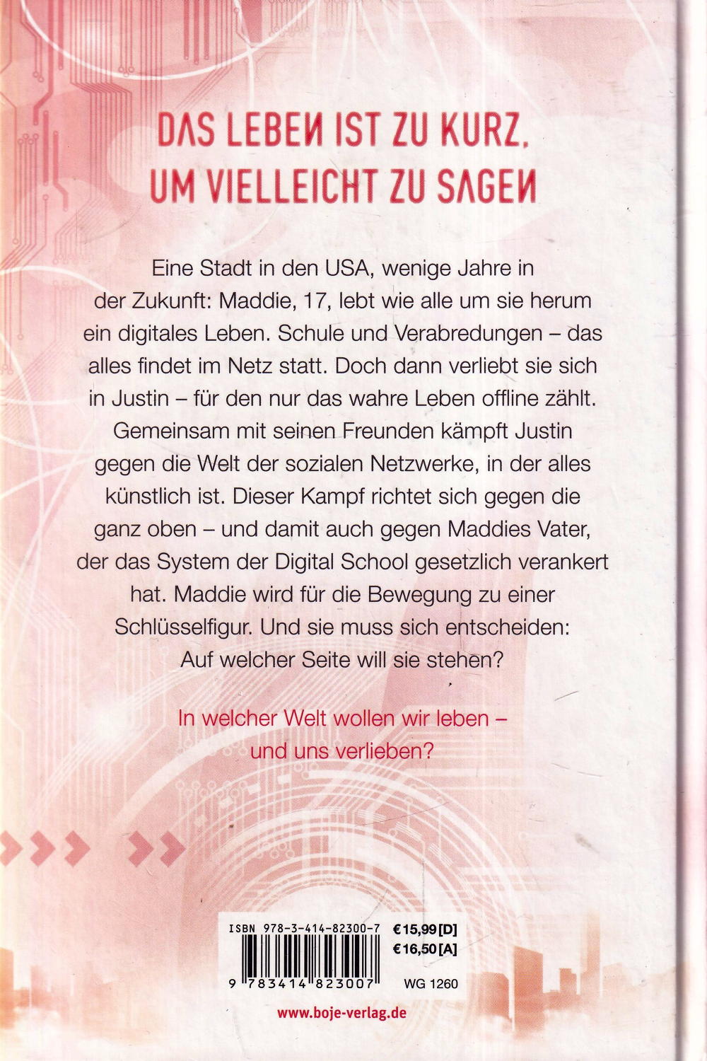 Gemeinsam mit seinen Freunden kämpft Justin gegen die Welt der sozialen Netzwerke, in der alles künstlich ist. Dieser Kampf richtet sich gegen die ganz oben - und damit auch gegen Maddies Vater, der das System der Digital School gesetzlich verankert hat. Maddie wird für die Bewegung zu einer Schlüsselfigur. Und sie muss sich entscheiden: Auf welcher Seite will sie stehen?