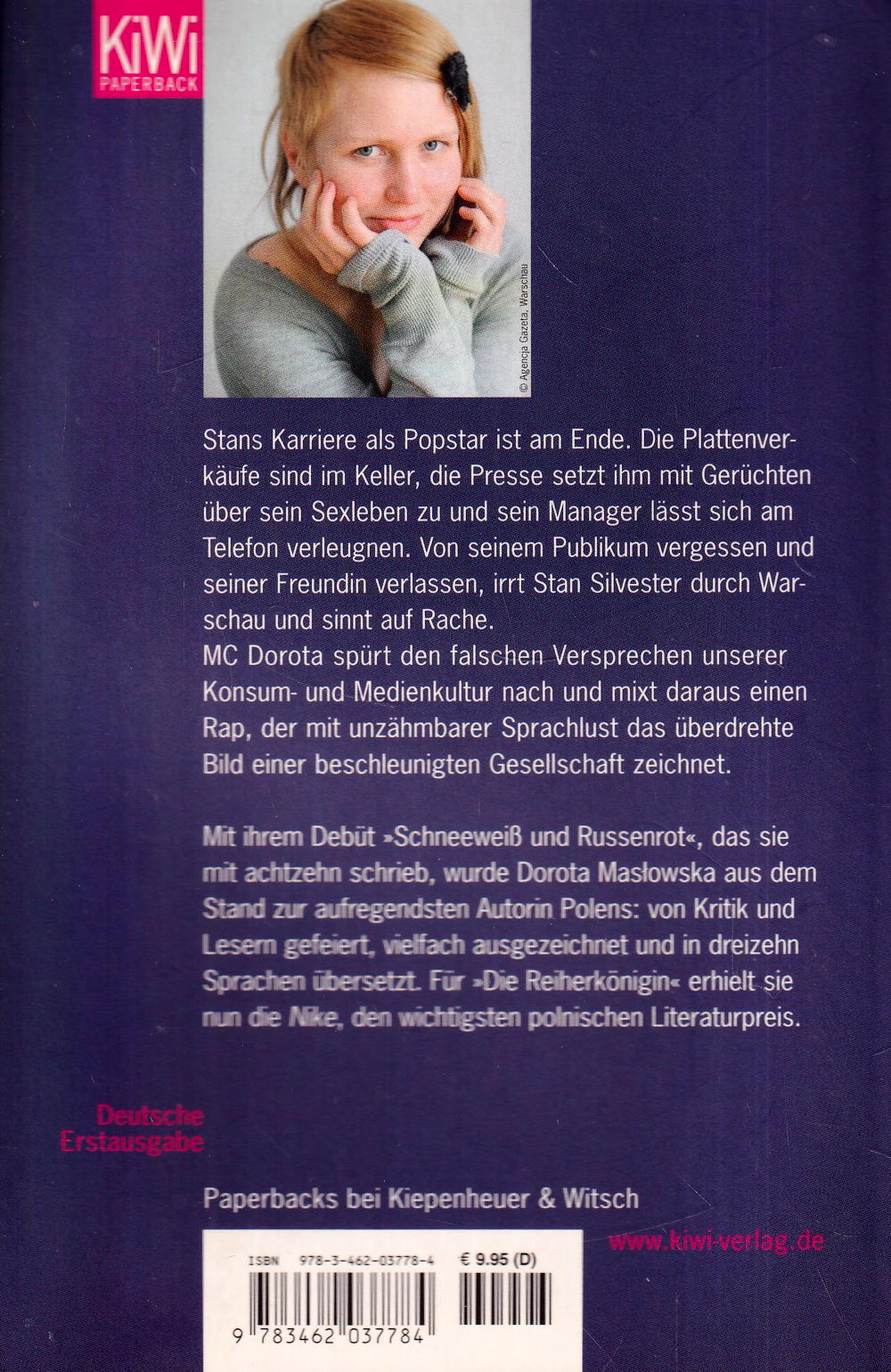 Der Star der polnischen Literatur rappt Nach ihrem Debut Schneeweiss und Russenrot, das von Kritikern und Lesern gleichermassen gefeiert worden ist, landete Dorota Maslowska mit_ Die Reiherkönigin_ ihren nächsten grossen Coup. Ein schonungsloser Rap über den Existenzkampf in der Medien- und Konsumwelt, der mit dem renommierten_ NIKE-_Preis ausgezeichnet wurde.