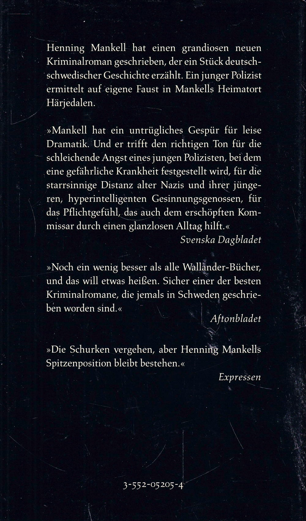 Während Lindman versucht, mit sich und seiner Krankheit ins Reine zu kommen, scheut er kein Risiko und ist den Ermittlungen der Kollegen am Ort immer eine Nasenlänge voraus. Er entdeckt, dass Herbert Molin ein ehemaliger SS-Mann war, der 1942 als Freiwilliger aufseiten Hitlers in den Krieg zog und seiner politischen Überzeugung offenbar bis zum Lebensende treu blieb. Und er findet wenig später ein weiteres schlimm zugerichtetes Mordopfer vor, Molins Nachbarn, einen pensionierten Geiger. War hier wirklich zweimal derselbe Täter am Werk? Was hat der Musiker mit Molins faschistischen Ansichten zu tun? Und was ist mit den beiden Frauen, der alten und der jungen, die so schön ist, dass Lindman alle Vorsicht vergisst?