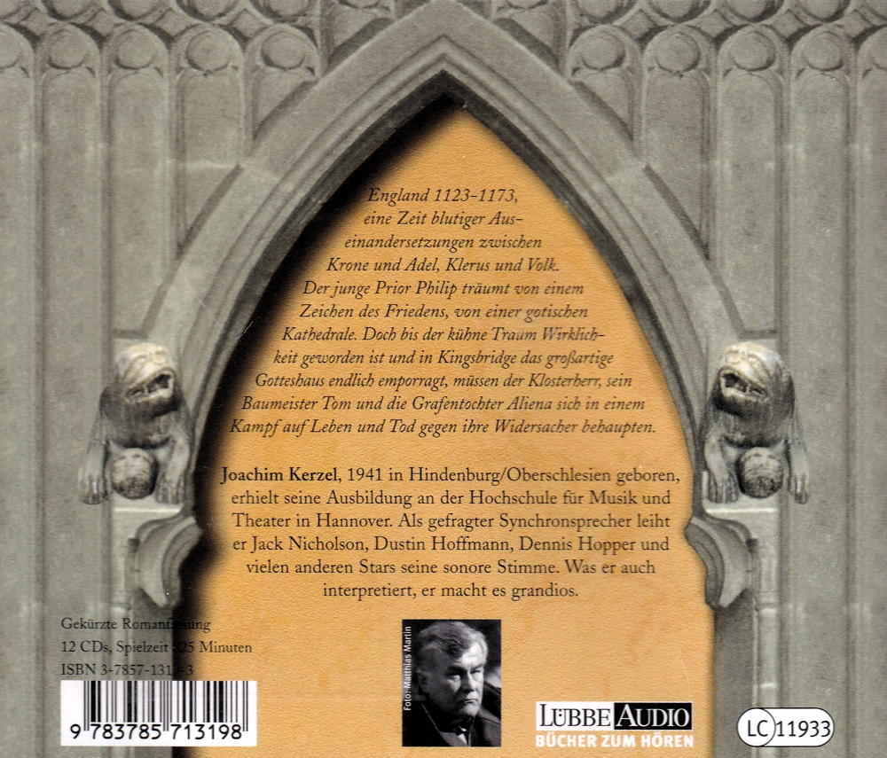 England 1123-1173, eine Zeit blutiger Auseinandersetzungen zwischen Krone und Adel, Klerus und Volk. Der junge Prior Philip träumt von einem Zeichen des Friedens, von einer gotischen Kathedrale. Doch bis der kühne Traum Wirklichkeit geworden ist und in Kingsbridge das grossartige Gotteshaus endlich emporragt, müssen der Klosterberr, sein Baumeister Tom und die Grafentochter Aliena sich in einem Kampf auf Leben und Tod gegen ihre Widersacher behaupten.