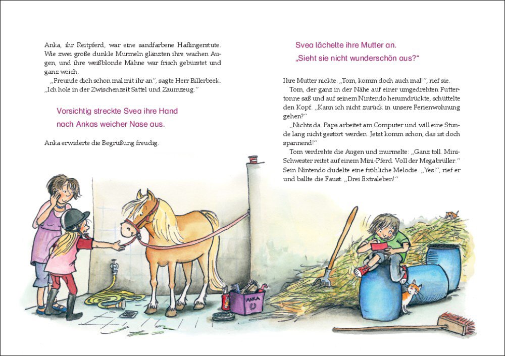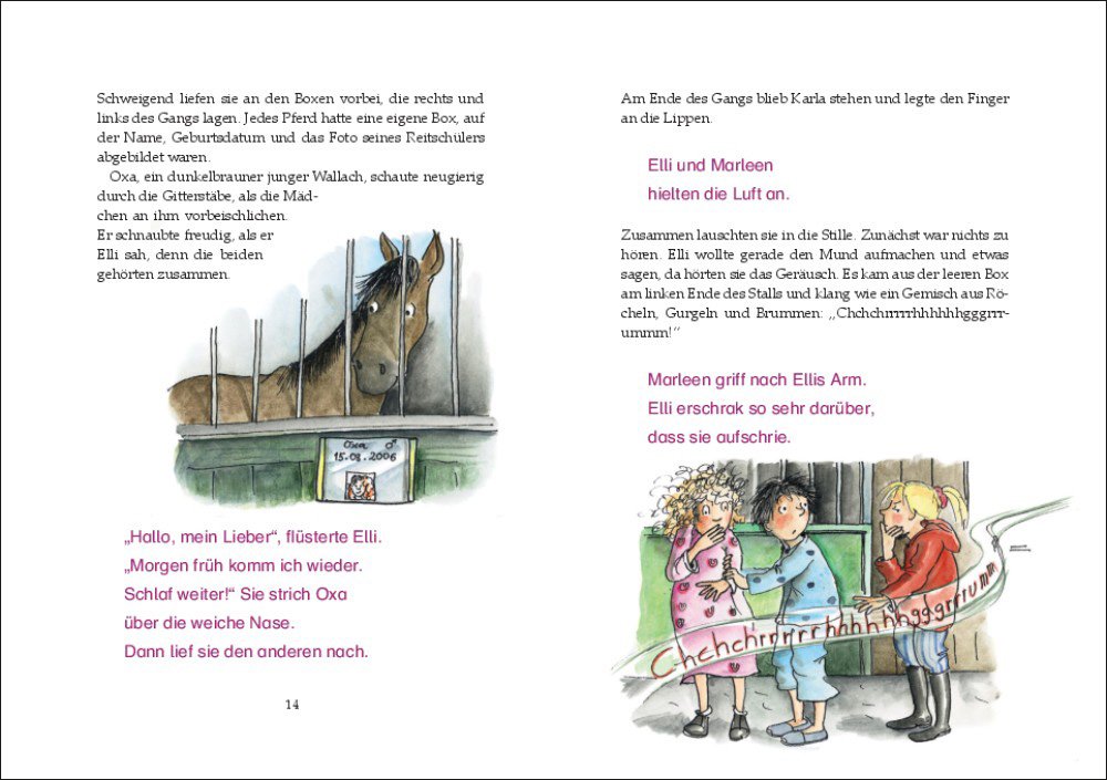 Reiten ist gar nicht schwer! Das findet jedenfalls Leni. Paula hingegen ist sich nicht so sicher, ob sie überhaupt reiten lernen möchte. Wird sie trotzdem in den Sattel steigen? Die Mädchen aus dem Pferdeinternat haben ein ganz anderes Problem: Es spukt im Pferdestall ! Und dabei handelt es sich um kein gewöhnliches Gespenst. Dieses Buch ist für alle, die pferdestarke Geschichten lieben und sattelfeste Leser werden wollen.