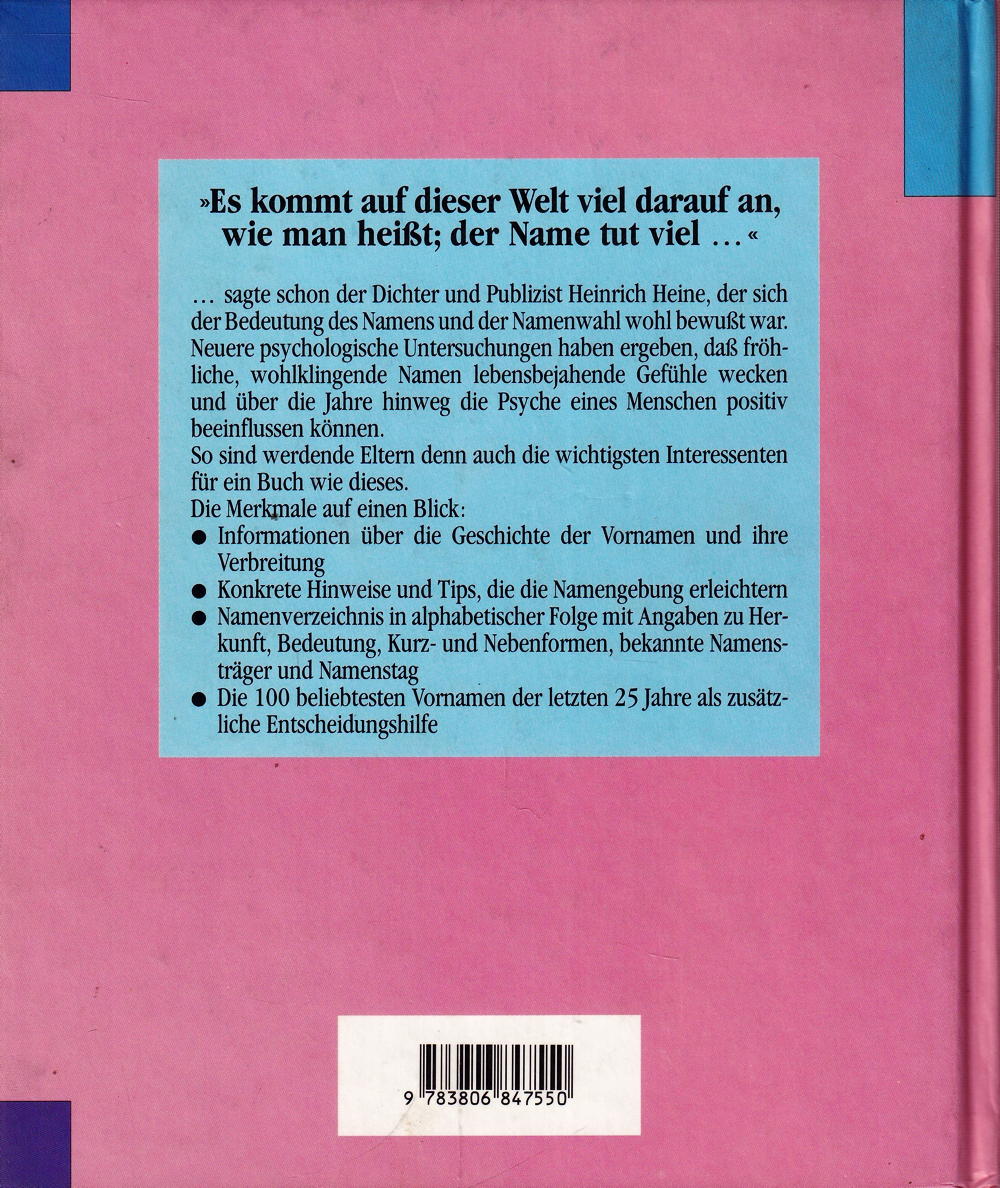Namenverzeichnis in alphabetischer Folge mit Angaben zu Herkunft, Bedeutung, Kurz- und Nebenformen, bekannte Namensträger und Namenstag
