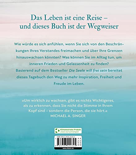 Die Erkenntnisse aus „Die Seele will frei sein“ können die Leser*innen nun mit Hilfe eines spirituellen Tagebuchs anwenden und in ihren Alltag integrieren. Dieses Buch ist die ideale Begleitung auf dem Weg zur Selbstfindung und zu den richtigen Entscheidungen im Leben. Mit dem Ritual des Aufschreibens motivieren wir uns täglich neu, können Krisen besser bewältigen und finden zu unserer inneren Stärke. Buchrückseite Das Leben ist eine Reise – und dieses Buch ist der Wegweiser Wie würde es sich anfühlen, wenn Sie sich von den Beschränkungen Ihres Verstandes freimachen und über Ihre Grenzen hinauswachsen könnten? Was können Sie im Alltag tun, um inneren Frieden und Gelassenheit zu finden?