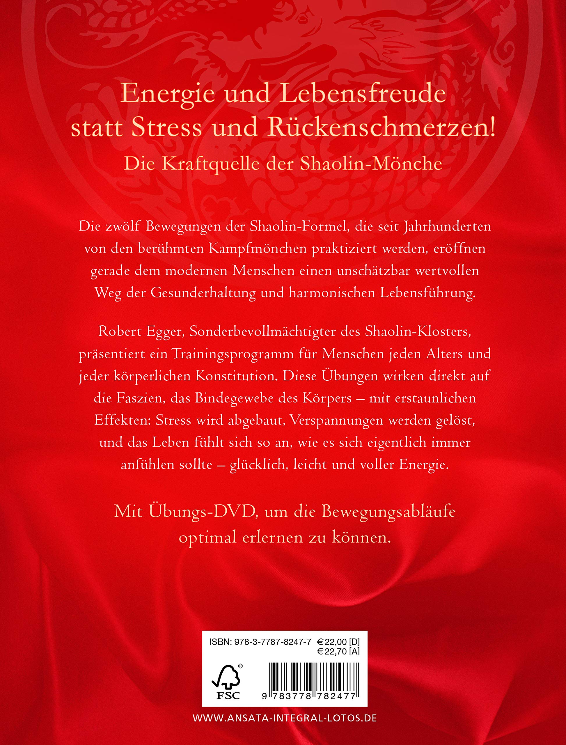 Robert Egger, Sonderbevollmächtigter des Shaolin-Klosters, erschliesst die lang geheim gehaltene Kraftquelle der Mönche und präsentiert ein Trainingsprogramm für Menschen jeden Alters und jeder körperlichen Konstitution. Stress wird abgebaut, körperliche Verspannungen werden gelöst, und das Leben fühlt sich so an, wie es sich - auch nach Buddhas Aussage - eigentlich immer anfühlen sollte: glücklich, leicht und voller Energie.