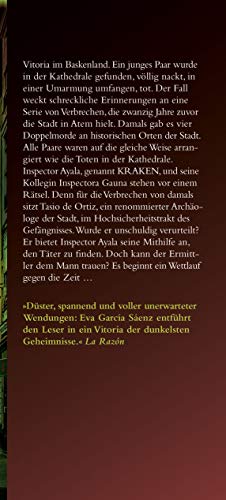 Der grossartige Thriller-Bestseller aus Spanien – jetzt auch verfilmt auf Netflix. Der erste Fall für Inspector Ayala, genannt Kraken. Eine Stadt ist in Angst. In der Kathedrale von Vitoria liegt ein totes Paar, völlig nackt, die Hände auf der Wange des anderen. Das alles gleicht exakt einer Serie von Verbrechen vor zwanzig Jahren, die die Stadt in Atem hielt. Doch der Fall gilt als gelöst, der Täter sitzt in strenger Einzelhaft. Hat man damals einen Unschuldigen verurteilt?