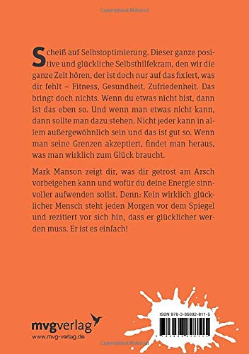 Scheiss auf positives Denken sagt Mark Manson. Die ungeschönte Perspektive ist ihm lieber. Wenn etwas scheisse ist, dann ist es das eben. Und wenn man etwas nicht kann, dann sollte man dazu stehen. Nicht jeder kann in allem aussergewöhnlich sein und das ist gut so. Wenn man seine Grenzen akzeptiert, findet man die Stärke, die man braucht. Denn es gibt so viele Dinge, auf die man im Gegenzug scheissen kann. Man muss nur herausfinden, welche das sind und wie man sie sich richtig am Arsch vorbeigehen lässt. So kann man sich dann auf die eigenen Stärken und die wichtigen Dinge besinnen und hat mehr Zeit, sein Potential gänzlich auszuschöpfen. Die subtile Kunst des darauf Scheissens verbindet unterhaltsame Geschichten und schonungslosen Humor mit hilfreichen Tipps für ein entspannteres und besseres Leben. Damit man seine Energie für sinnvolleres verwendet als für Dinge, die einem egal sein können.