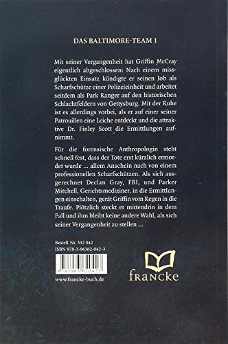 Mit seiner Vergangenheit hat Griffin McCray eigentlich abgeschlossen: Nach einem missglückten Einsatz kündigte er seinen Job als Scharfschütze einer Polizeieinheit und arbeitet seitdem als Park Ranger auf den historischen Schlachtfeldern von Gettysburg. Mit der Ruhe ist es allerdings vorbei, als er auf einer seiner Patrouillen eine Leiche entdeckt und die attraktive Dr. Finley Scott die Ermittlungen aufnimmt. Für die forensische Anthropologin steht schnell fest, dass der Tote erst kürzlich ermordet wurde, allem Anschein nach von einem professionellen Scharfschützen. Als sich ausgerechnet Declan Gray, FBI, und Parker Mitchell, Gerichtsmediziner, in die Ermittlungen einschalten, gerät Griffin vom Regen in die Traufe. Plötzlich steckt er mittendrin in dem Fall und ihm bleibt keine andere Wahl, als sich seiner Vergangenheit zu stellen …